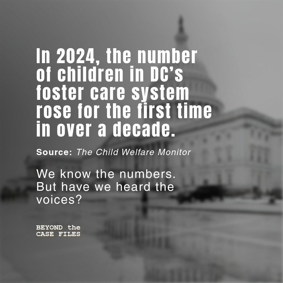 Beyond the Case Files amplifies the voices of D.C. foster youth and alumni through powerful interviews and testimonies. Your support funds these stories, driving awareness and action to transform the child welfare system.